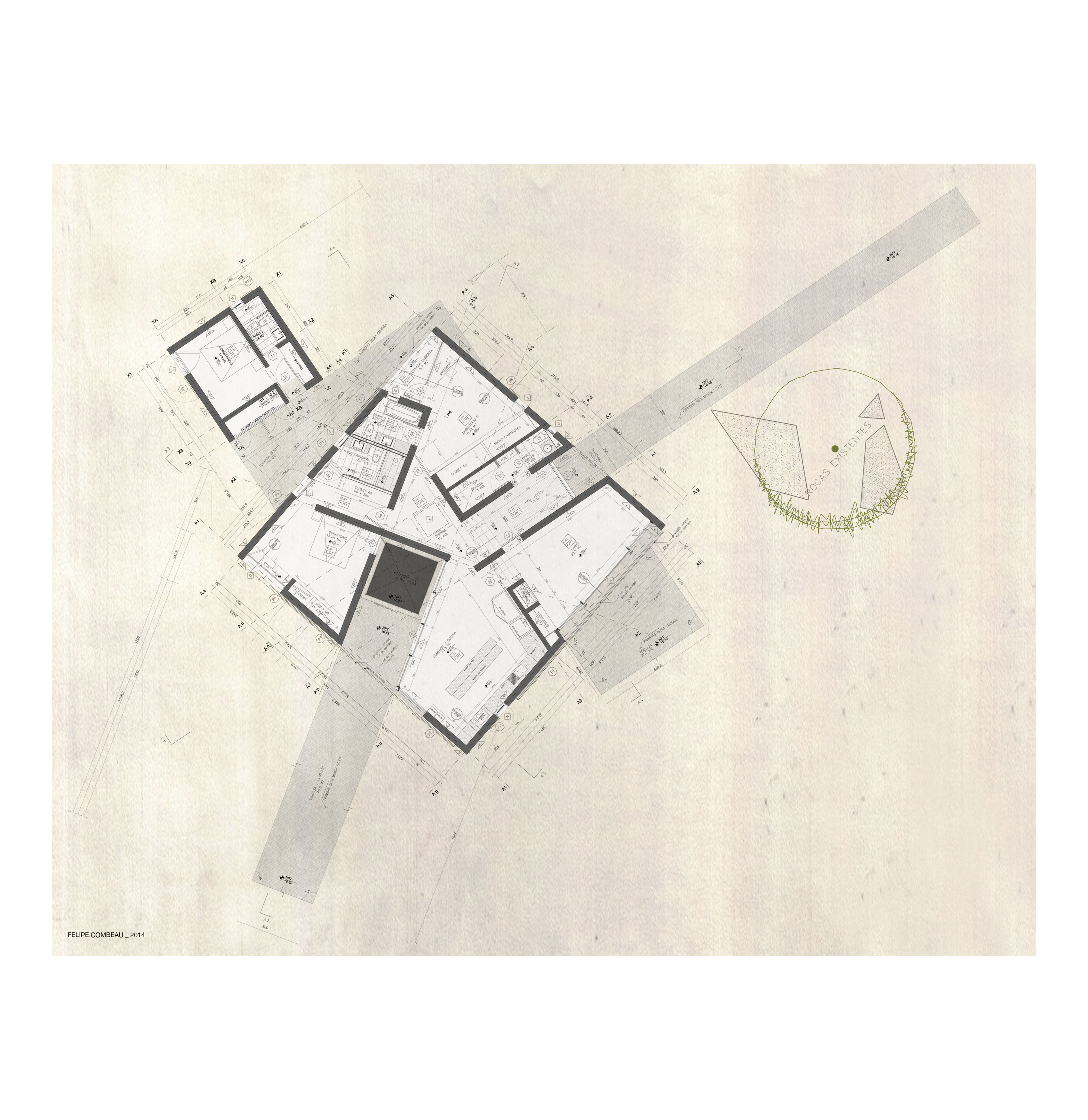 The second step introduced a passage cutting through the square, defining an intuitive point of entry and exit while separating public and private areas within. This gesture breaks the box, giving it permeability and allowing the exterior to flow through the built volume.