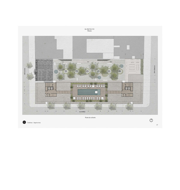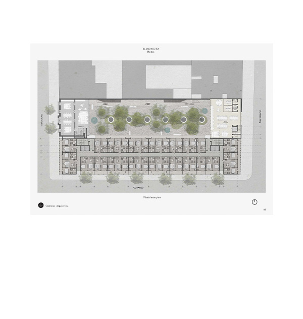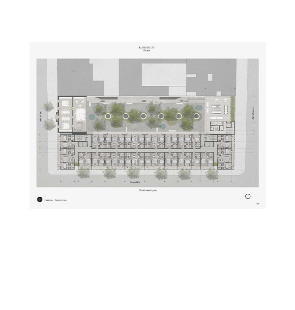The second structure, facing San Ignacio Street, is a three-story coworking building connected on all three levels and its roof to the existing house via an open corridor leading to the courtyard. In this way, the historic house and the new building function as a single entity that selectively closes off from the streets but opens generously towards the central, green, and quiet courtyard.