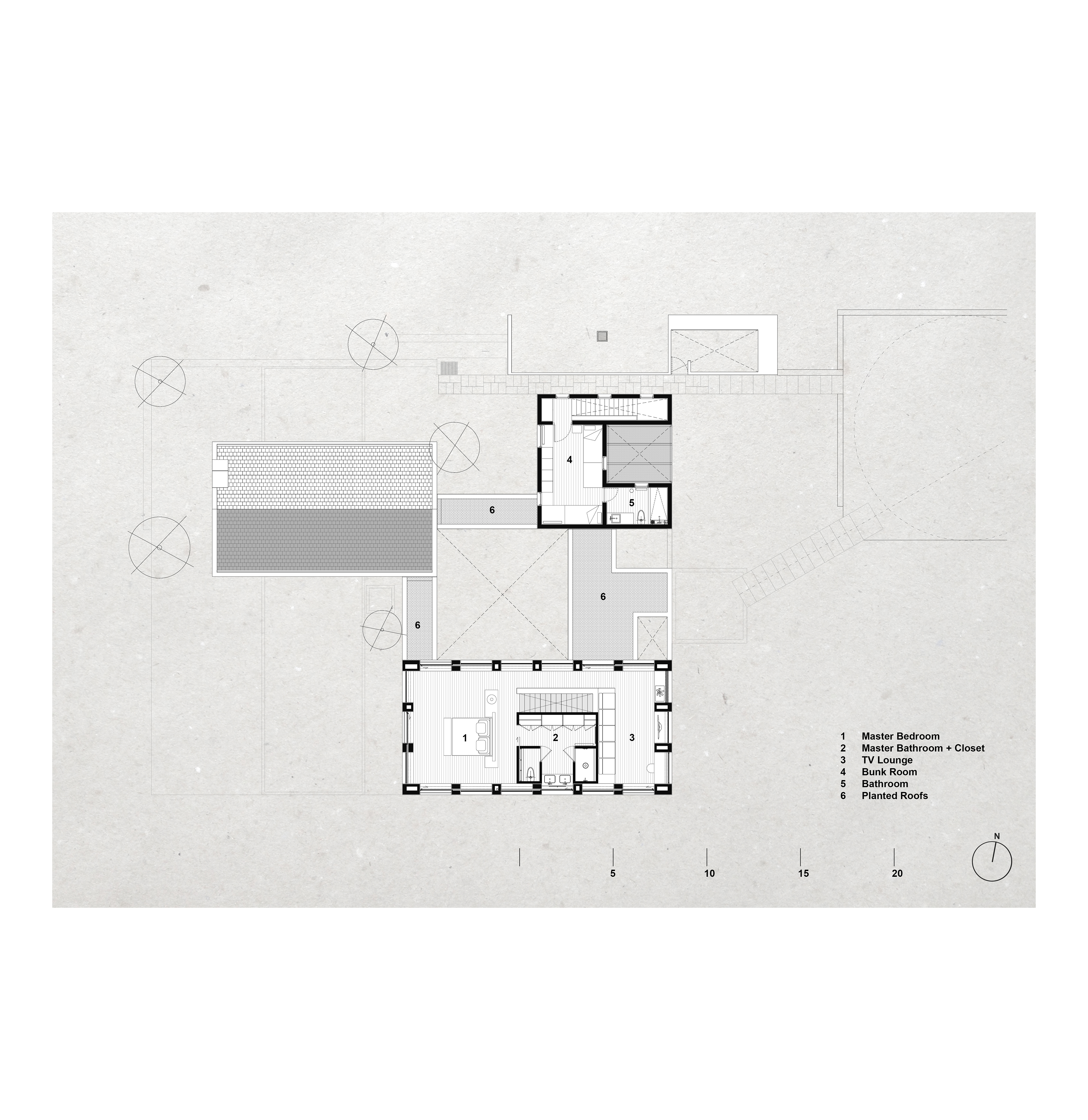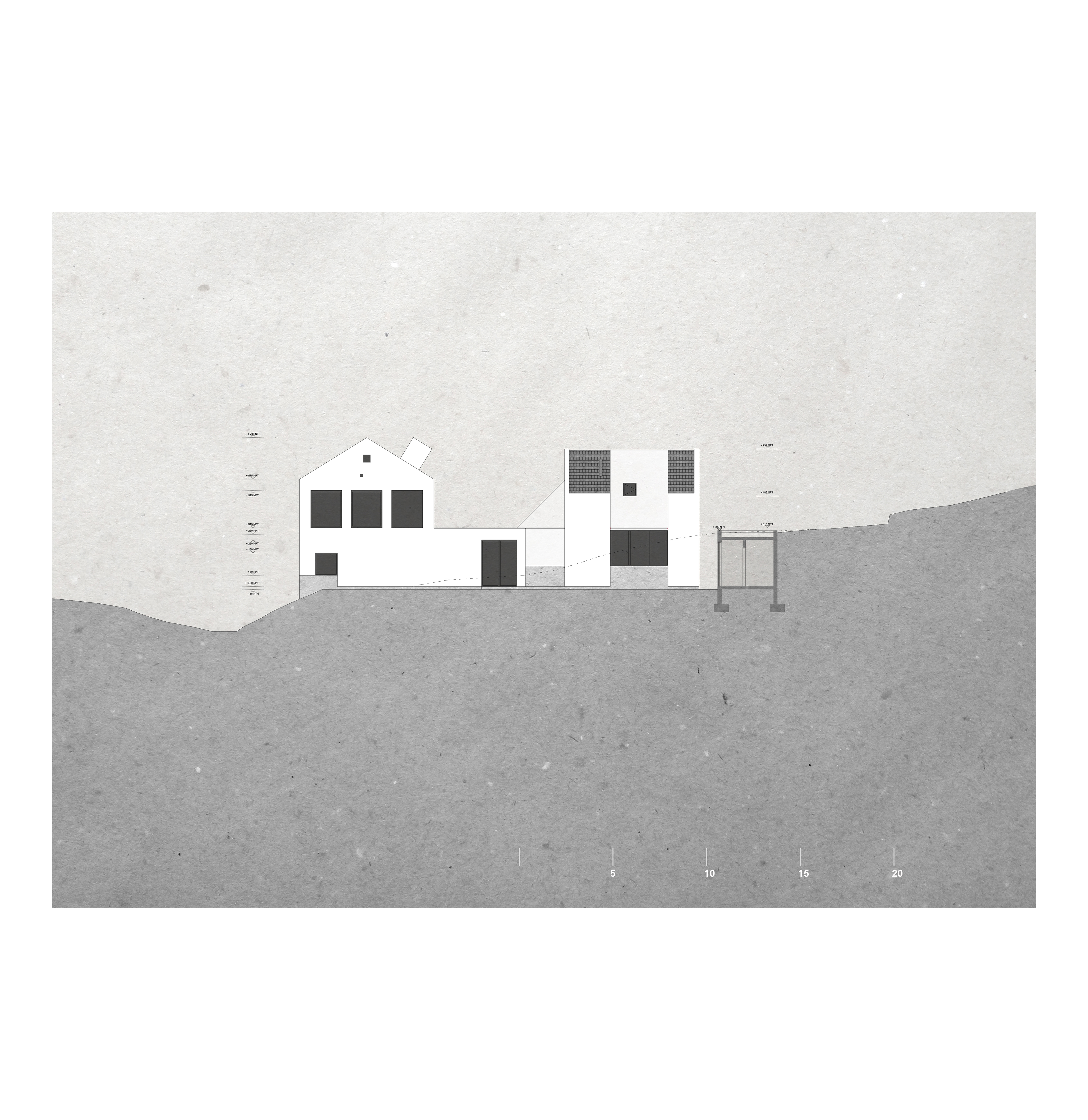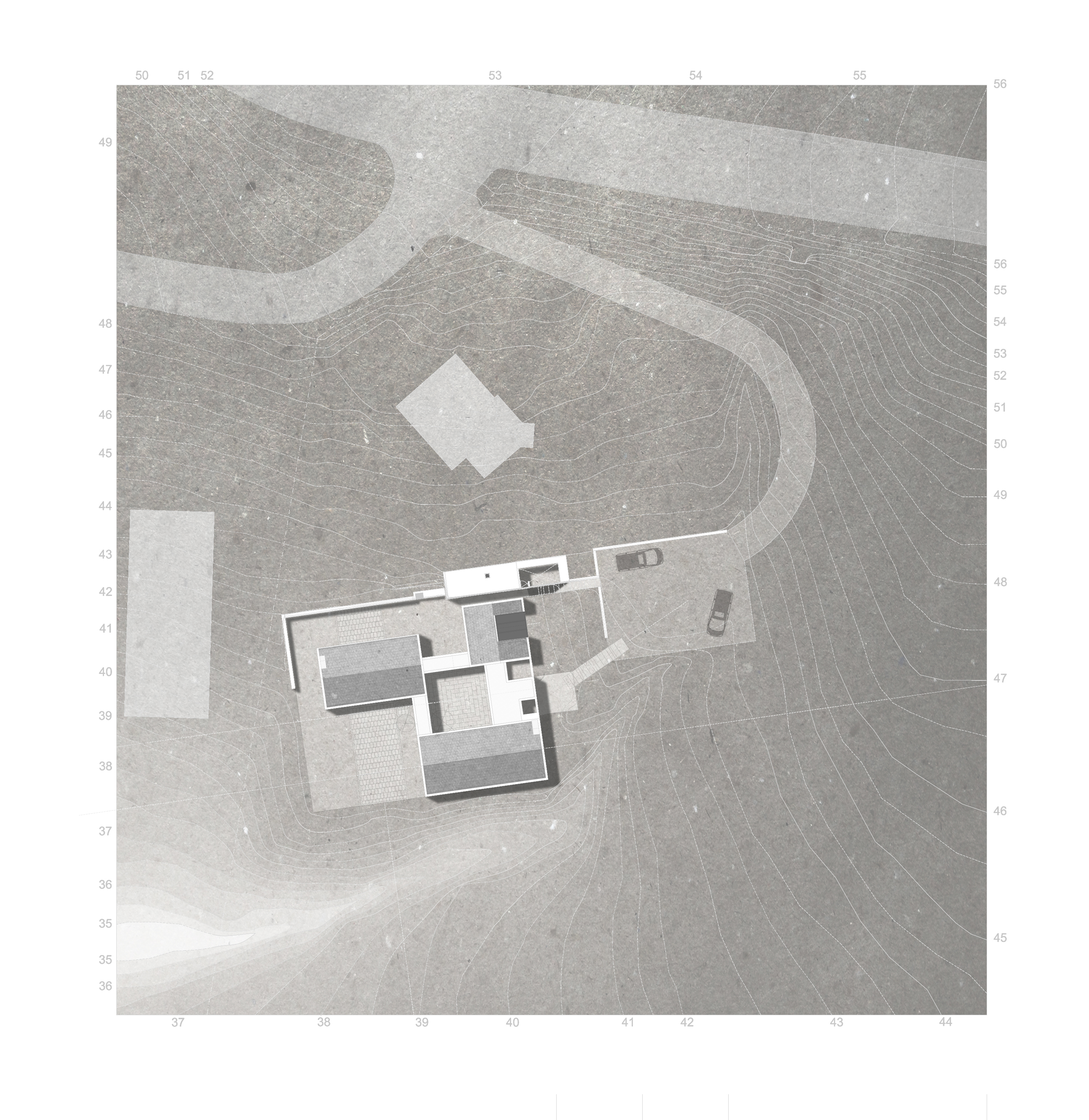 The existing 20% natural site ‘slope forced to make a necessary wide cut-and-fill platform for the house to stand and to allow the ground floor to expand outside. In this way, the entire perimeter of the house becomes a sequence of active outdoor spaces like terraces, courtyards, arrival, and pathways.