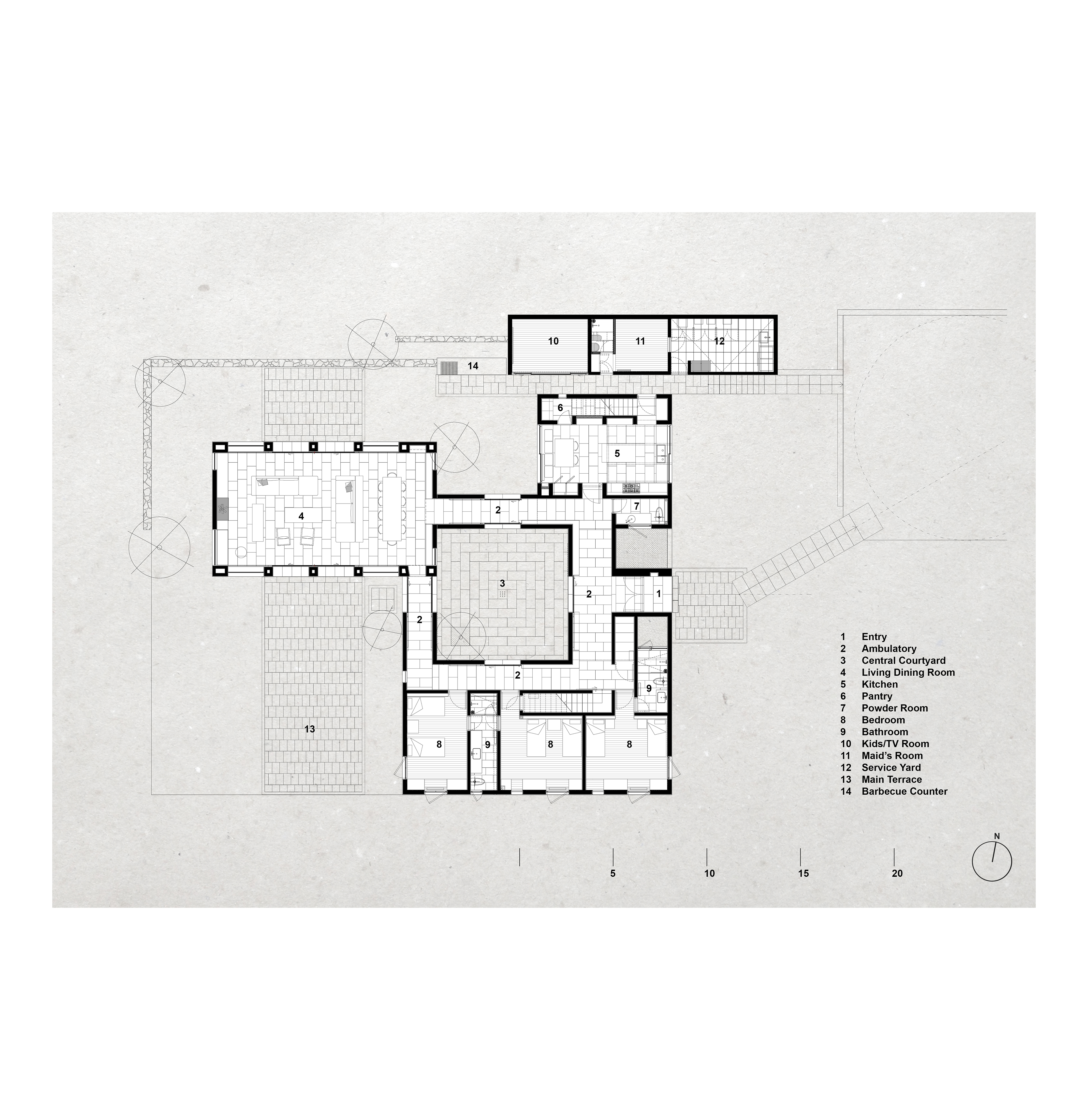 The result of this building arrangement is a calm and sober house with many inviting places for a big family life. It is a dichotomous house inspired by classical and modern values that Incidentally avoided the standard two-dimensional ocean-view-driven layout.