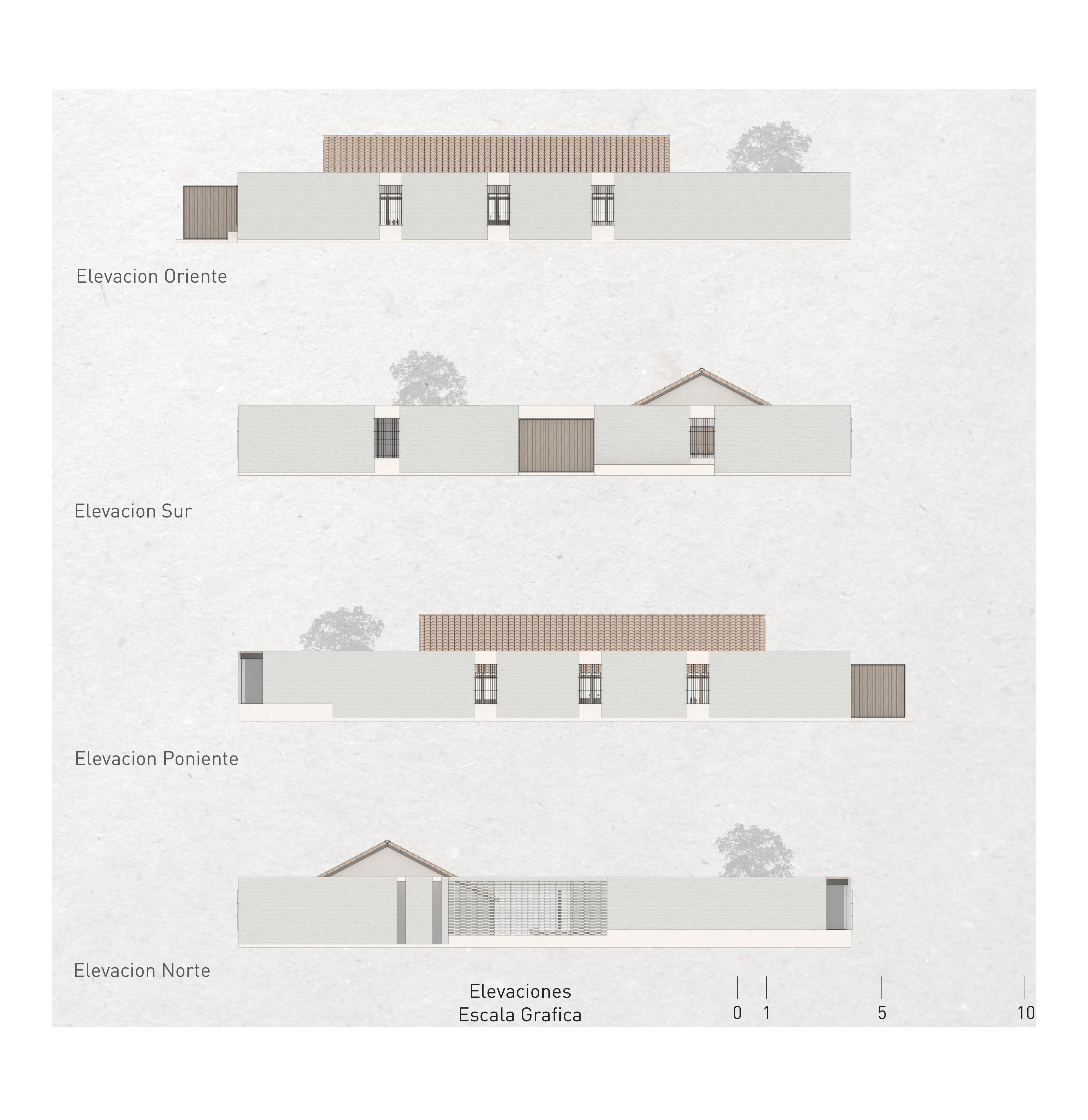 As mentioned, the project forms a walled perimeter, like a clos, aimed at creating an interiority that neither the existing house nor the open countryside provide. This interiority allows, on one hand, separation from the immediate context and an opening to distant views, and on the other, it articulates generous exterior spaces with varying degrees of shade thanks to the eaves, trees, and walls. The goal is to create a memorable experience for the visitor: crossing the entrance threshold against the light, hearing the wooden gate creak, walking on brick and stone pavements marked by the shadows cast by trees, hearing the sound of water in the courtyard and the echo of the walls, walking under the strict shadow of the corridor, passing through the thick adobe walls, feeling the coolness of the house’s interior, adapting the eyes to the dim light, and clearly seeing the different bottles displayed along the perimeter, some against the windows that let the wine inside shine through. The whole experience is not simply a box where wines are piled up, but a house that contains a terroir.